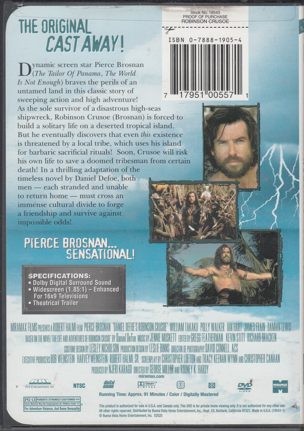| Titolo: | Robinson Crusoe con Pierce Brosnan. DVD Edizione Stati Uniti NTSC Regione 1, Lingua Inglese |