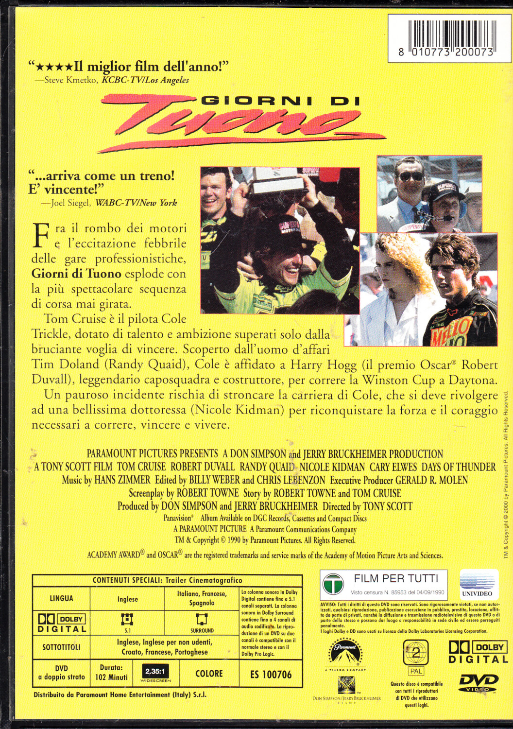 | Titolo: | Giorni di tuono un film con Tom Cruise. DVD in Italiano |