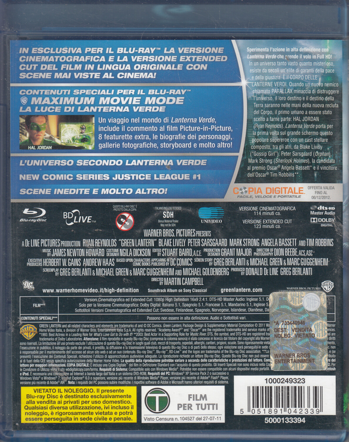 | Titolo: | Lanterna verde (Extended Cut) (Blu-Ray + DVD) Blu-Ray in Italiano |