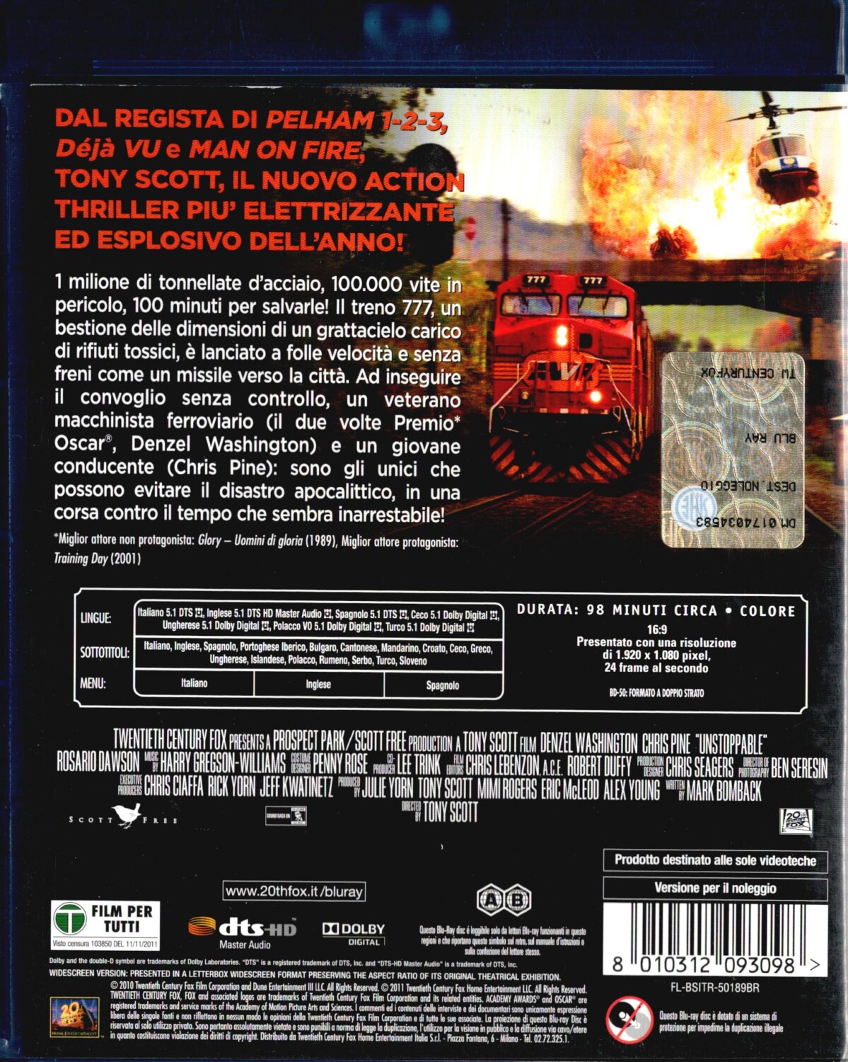 | Titolo: | Unstoppable. Fuori controllo Blu-Ray in Italiano Versione noleggio |