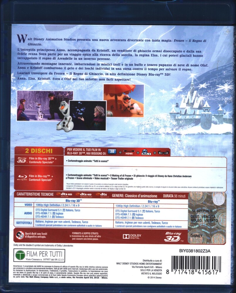 | Titolo: | Frozen Il Regno di Ghiaccio. Incluso Solo 1 disco Blu-Ray 3D. BLU-RAY in Italiano |
