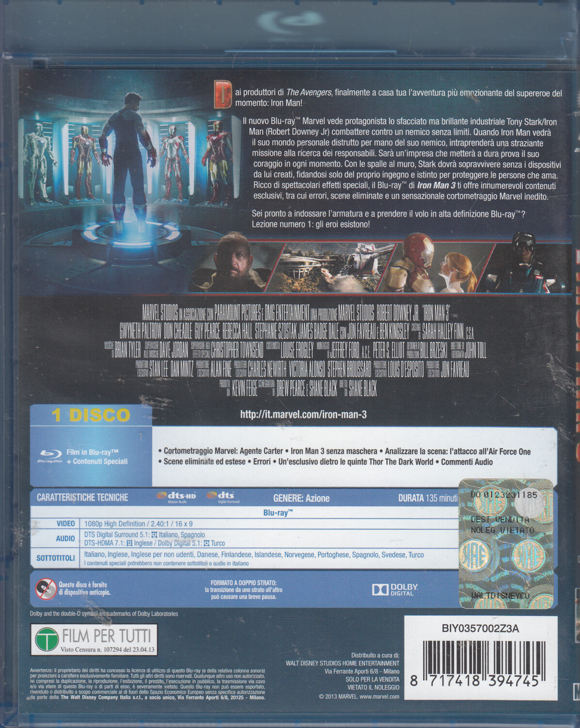 | Titolo: | Iron Man 3 Blu-Ray in Italiano |