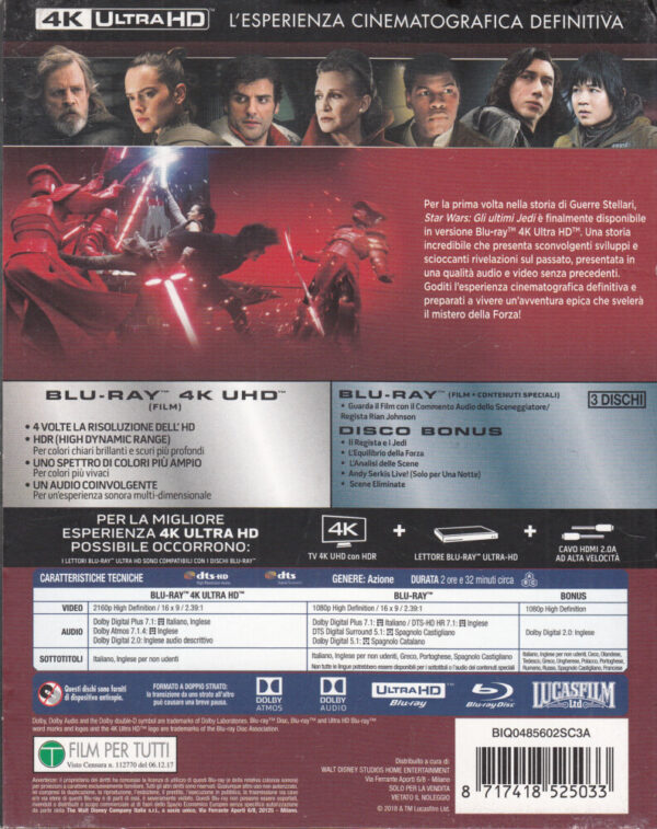 | Titolo: | Star Wars: Gli Ultimi Jedi n. 2 Blu-Ray + n. 1 UHD 4K in Italiano |