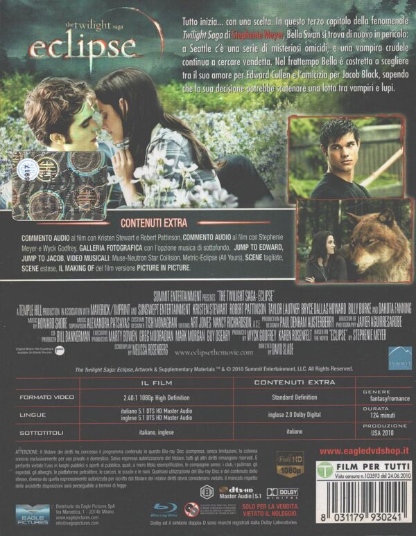 | Titolo: | Eclipse – The Twilight Saga – Special Edition – BLU-RAY in Italiano son Slipcase |