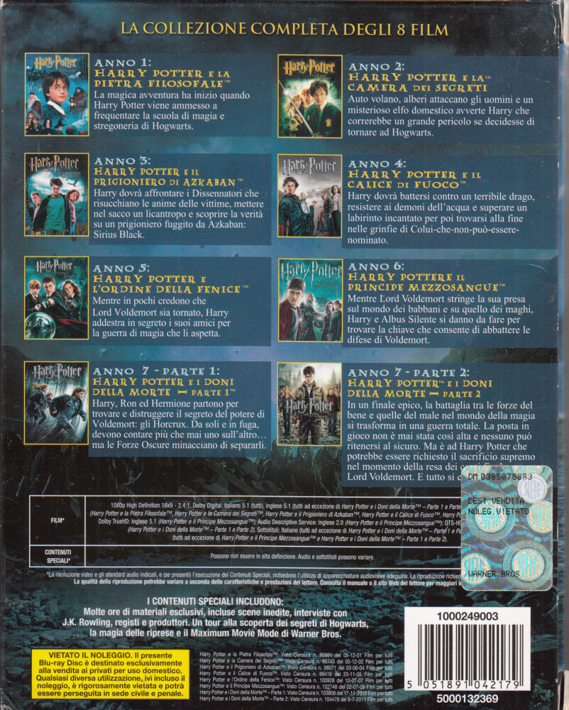 | Titolo: | Harry Potter. La Collezione Completa degli 8 Film. Box con n. 8 BLU-RAY in Italiano con Cofanetto |