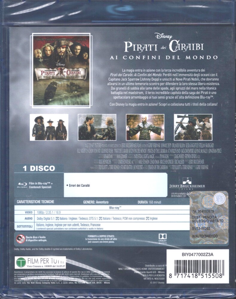 | Titolo: | Pirati dei Caraibi 3: Ai Confini del Mondo. Blu-Ray |