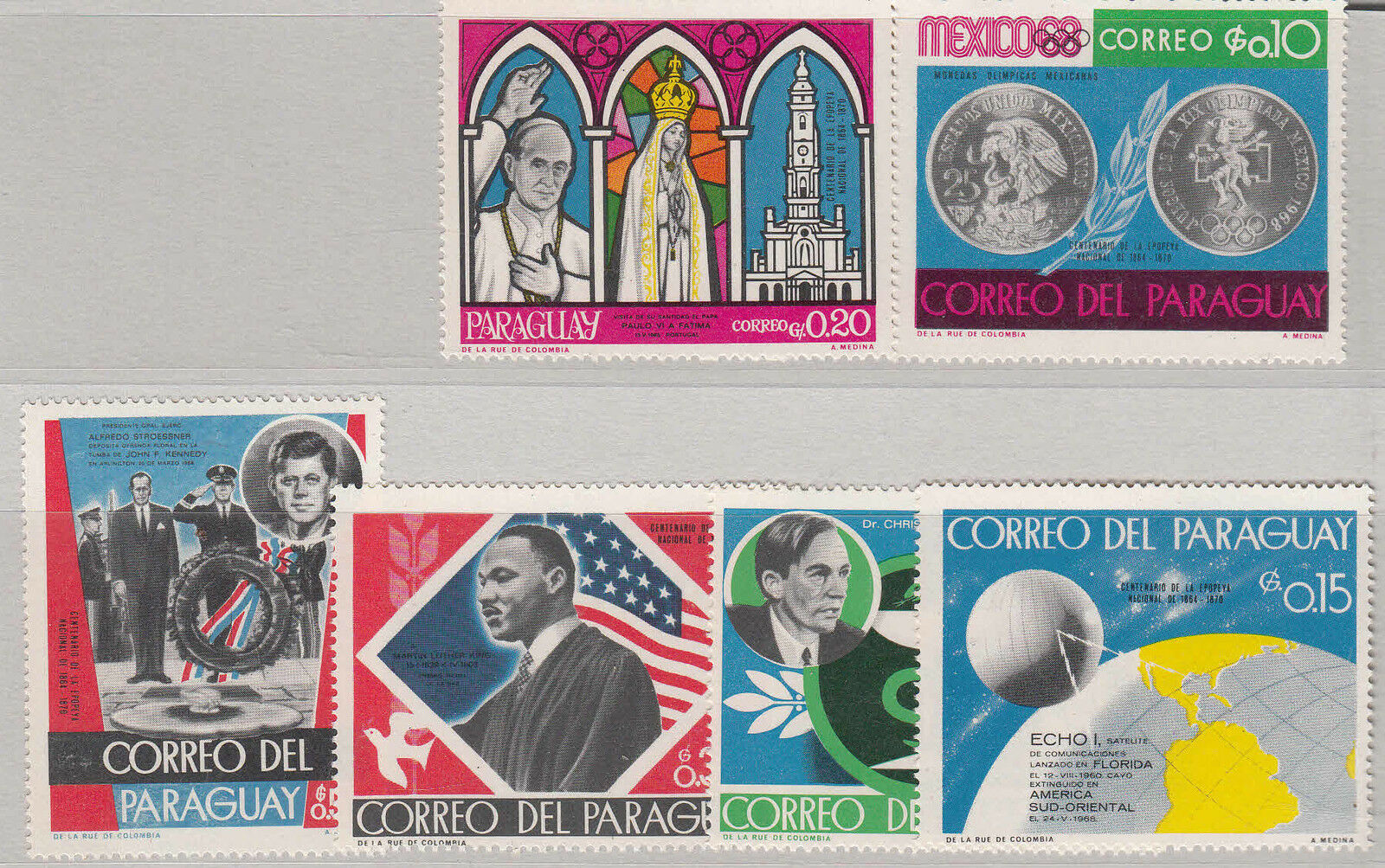 Lotto 6 FRANCOBOLLI PARAGUAY RELIGIONE POLITICA SOCIETA' (cod. E11) -C01