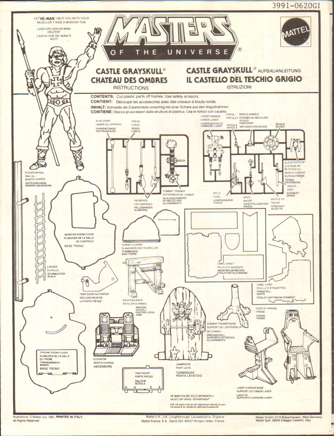 | Titolo: | MOTU Masters of The Universe Instructions Castle Grayskull, Istruzioni Castello del Teschio Grigio. 1981 Mattel |