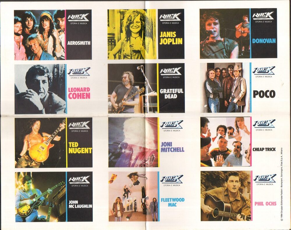 | Titolo: | Set di n. 24 adesivi allegati a Il Diario del Rock ed. 1984 Fabbri |