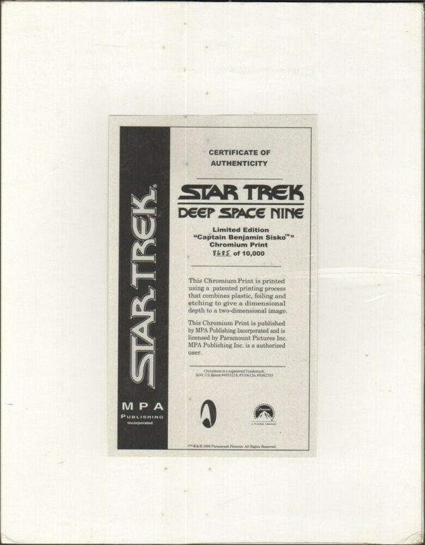 STAR TREK CHROMART Captain Benjamin Sisko Limited Edition Foto + Cornice