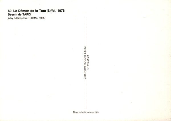 | Titolo: | Le demon de la Tour Eiffel (1976) – Jacques Tardi (dalle edizioni Casterman 1985) – Cartolina Postcard ed. Hubert |
