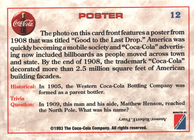 | Titolo: | Card Coca-Cola USA n. 12 – Poster 1908 – Trivia Card 1993 ed. Marketed |