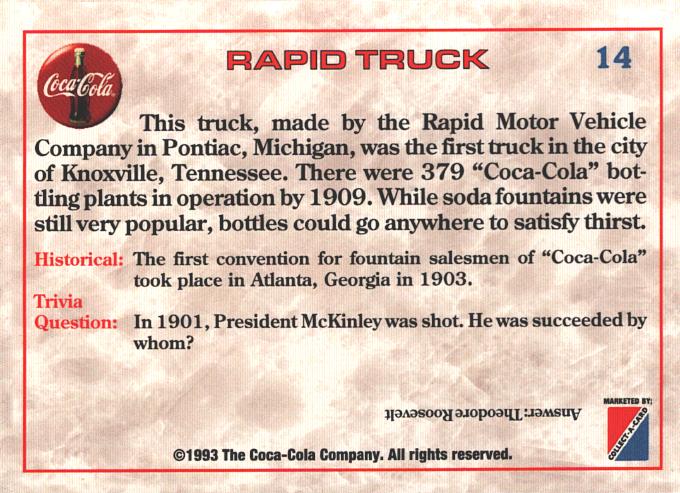 Card Coca-Cola USA n. 14 – Rapid Truck 1909 – Trivia Card 1993 ed. Marketed