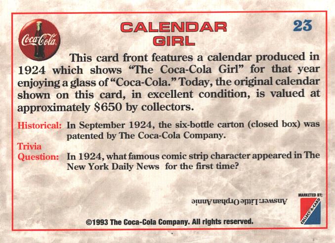Card Coca-Cola USA n. 23 – Calendar Girl 1924 – Trivia Card 1993 ed. Marketed