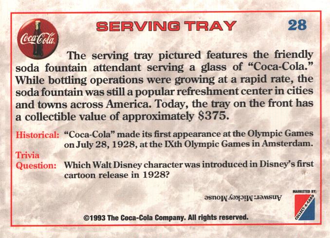 | Titolo: | Card Coca-Cola USA n. 28 – Serving Tray 1927 – Trivia Card 1993 ed. Marketed |