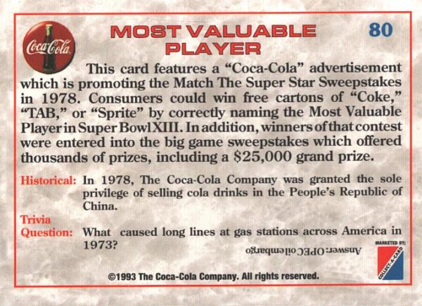 | Titolo: | Card Coca-Cola USA n. 80 – Most Valuable Player 1978 – Trivia Card 1993 ed. Marketed |