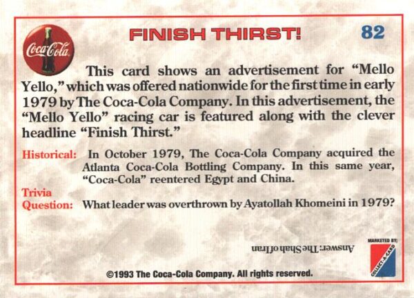 | Titolo: | Card Coca-Cola USA n. 82 – Finish Thirst! 1979 – Trivia Card 1993 ed. Marketed |