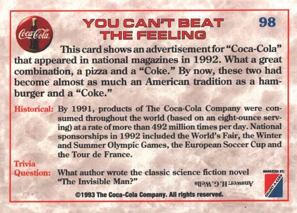 | Titolo: | Card Coca-Cola USA n. 98 – You can’t beat the feeling 1992 – Trivia Card 1993 ed. Marketed |