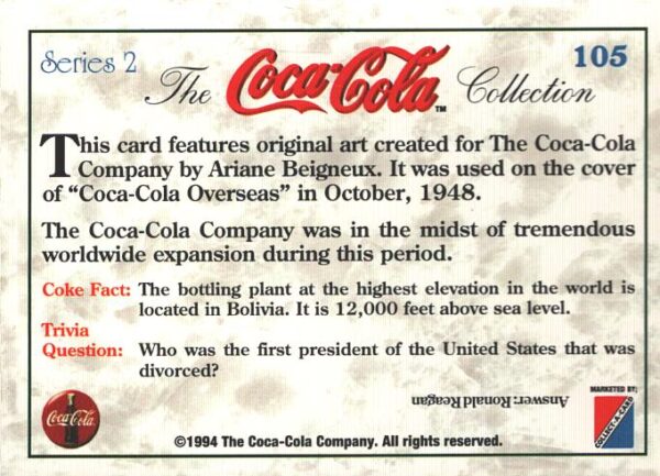 | Titolo: | Card The Coca-Cola Collection – Series 2 USA n. 105 – Trivia Card 1994 ed. Marketed |