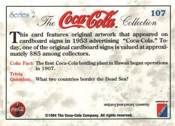 | Titolo: | Card The Coca-Cola Collection – Series 2 USA n. 107 – Trivia Card 1994 ed. Marketed |