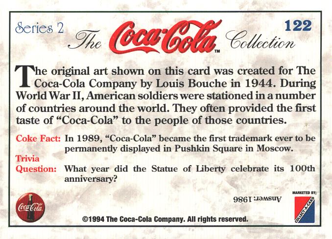 | Titolo: | Card The Coca-Cola Collection – Series 2 USA n. 122 – Trivia Card 1994 ed. Marketed |