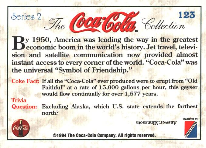 | Titolo: | Card The Coca-Cola Collection – Series 2 USA n. 123 – Trivia Card 1994 ed. Marketed |