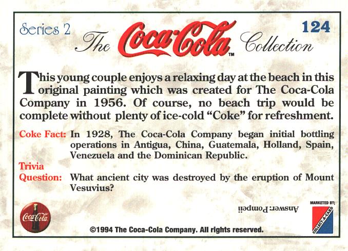 | Titolo: | Card The Coca-Cola Collection – Series 2 USA n. 124 – Trivia Card 1994 ed. Marketed |