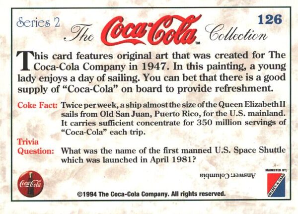| Titolo: | Card The Coca-Cola Collection – Series 2 USA n. 126 – Trivia Card 1994 ed. Marketed |