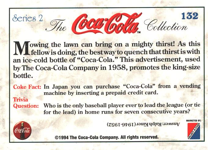 | Titolo: | Card The Coca-Cola Collection – Series 2 USA n. 132 – Trivia Card 1994 ed. Marketed |