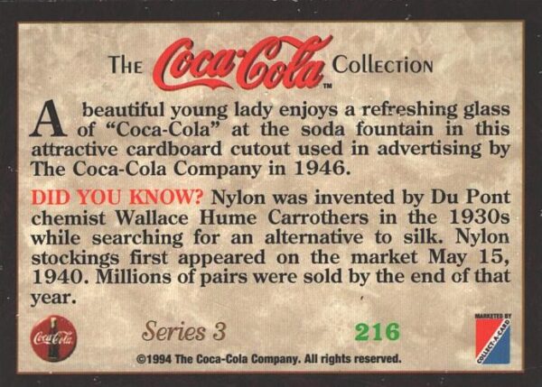 | Titolo: | Card The Coca-Cola Collection – Series 3 USA n. 216 – Card 1994 ed. Marketed |