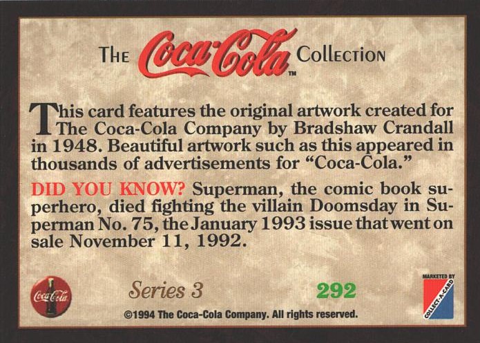 | Titolo: | Card The Coca-Cola Collection – Series 3 USA n. 292 – Card 1994 ed. Marketed |
