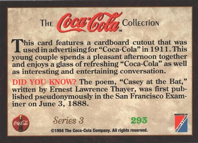 | Titolo: | Card The Coca-Cola Collection – Series 3 USA n. 293 – Card 1994 ed. Marketed |