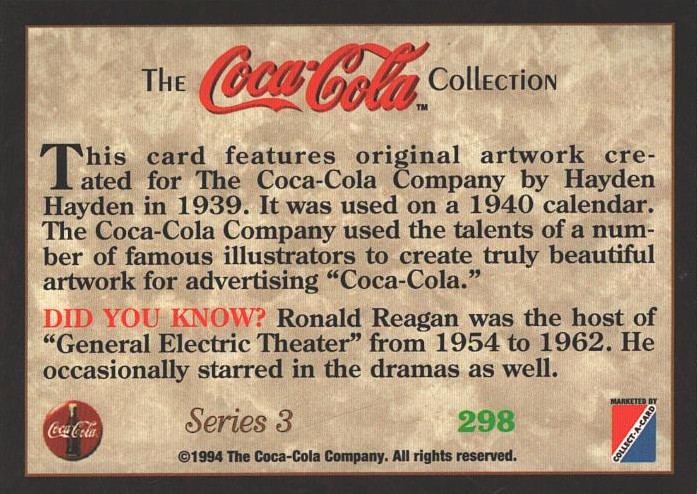 | Titolo: | Card The Coca-Cola Collection – Series 3 USA n. 298 – Card 1994 ed. Marketed |