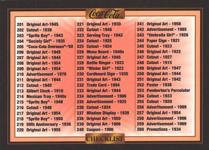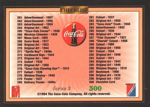 | Titolo: | Card The Coca-Cola Collection – Series 3 USA n. 300 Checklist – Card 1994 ed. Marketed |