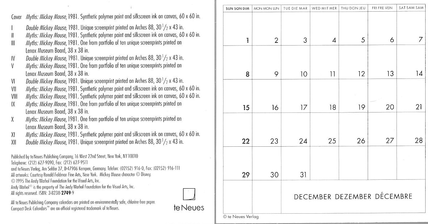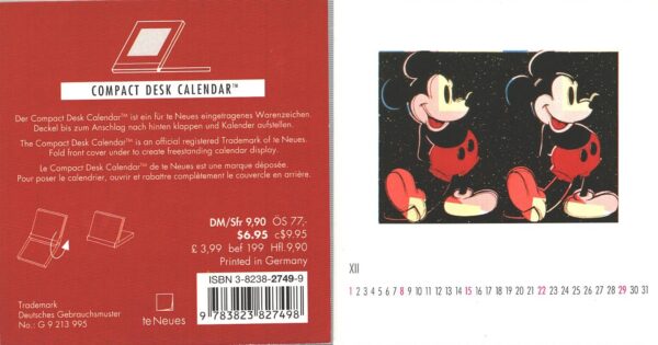 | Titolo: | Andy Warhol – Mickey Mouse 1996 – Compact Desk Calendar (Walt Disney) – Calendario da scrivania |