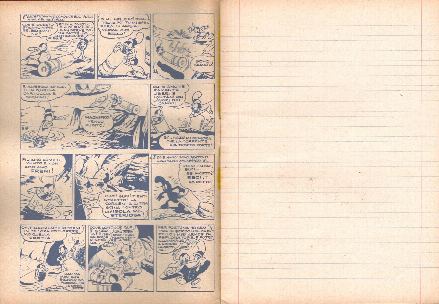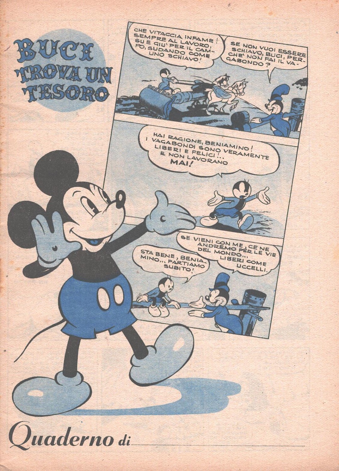 | Titolo: | Walt Disney – Quaderno scolastico a righe (anni ’40) – Cartiere Burgo ed. Mondadori (Buci trova un tesoro) |