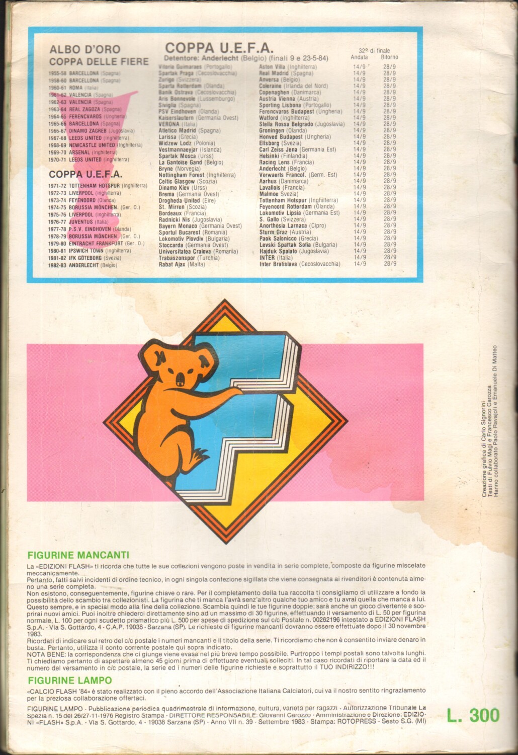 | Titolo: | Album Figurine CALCIO 1984 ’84. Edizioni Flash. Quasi Completo (manca una figurina) |