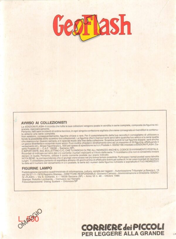 | Titolo: | Album figurine. GeoFlash. Edizioni Flash. Album Non completo con 55 figurine attaccate su 240 |