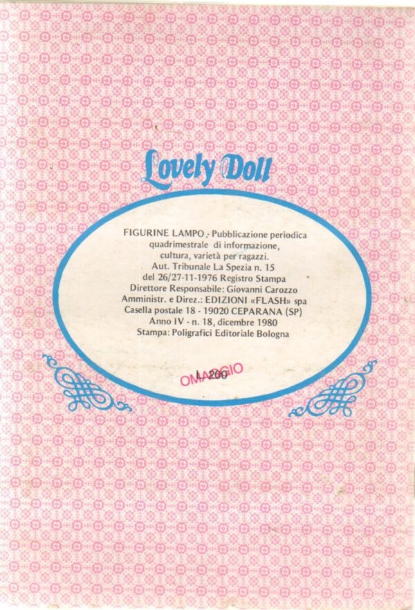 | Titolo: | Album figurine Lovely Doll 1980 Album Completo. Edizioni Flash. |