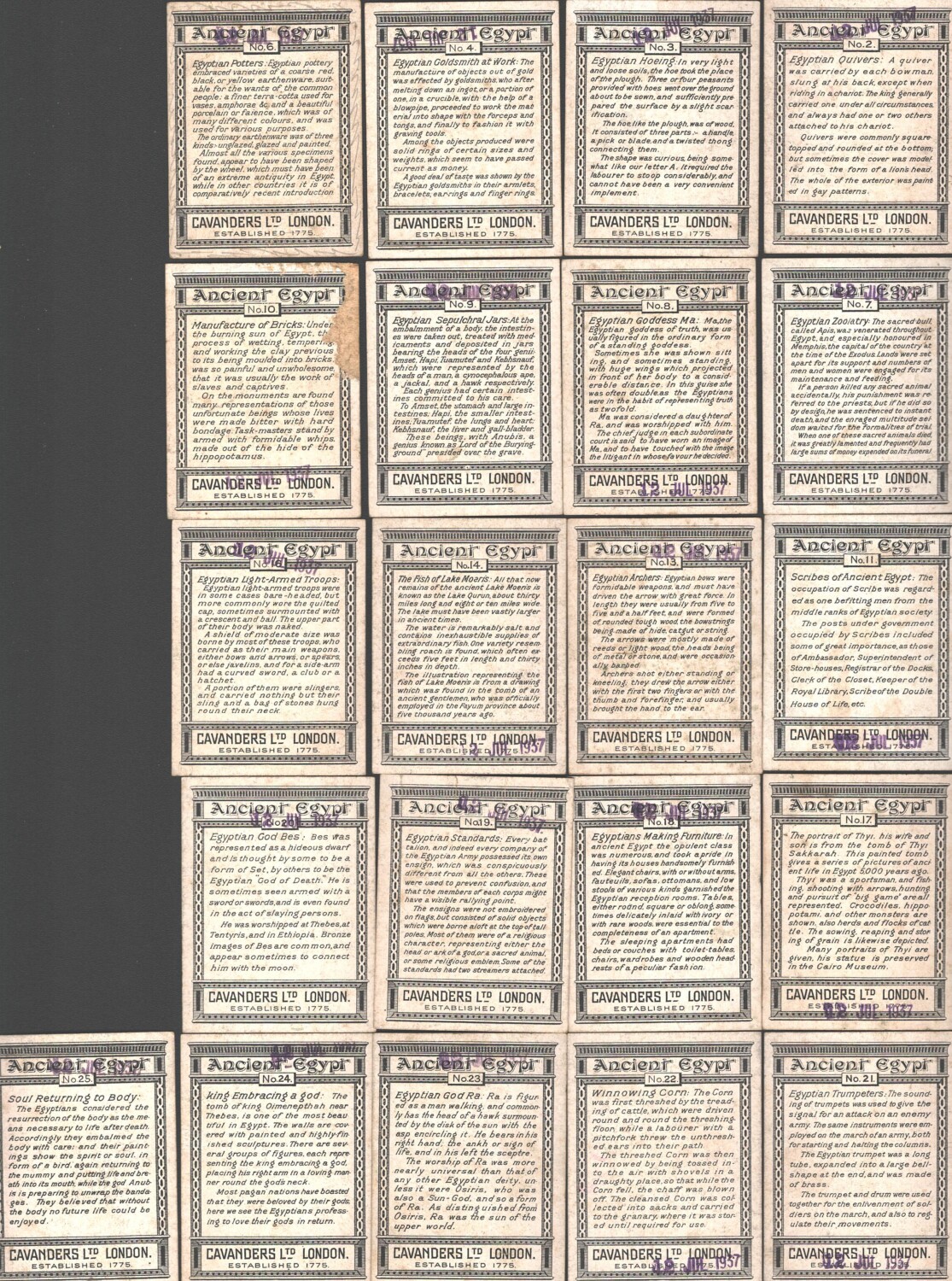 | Titolo: | Ancient Egypt – Lotto 21 figurine cards -1937 ed. Cavanders London England |