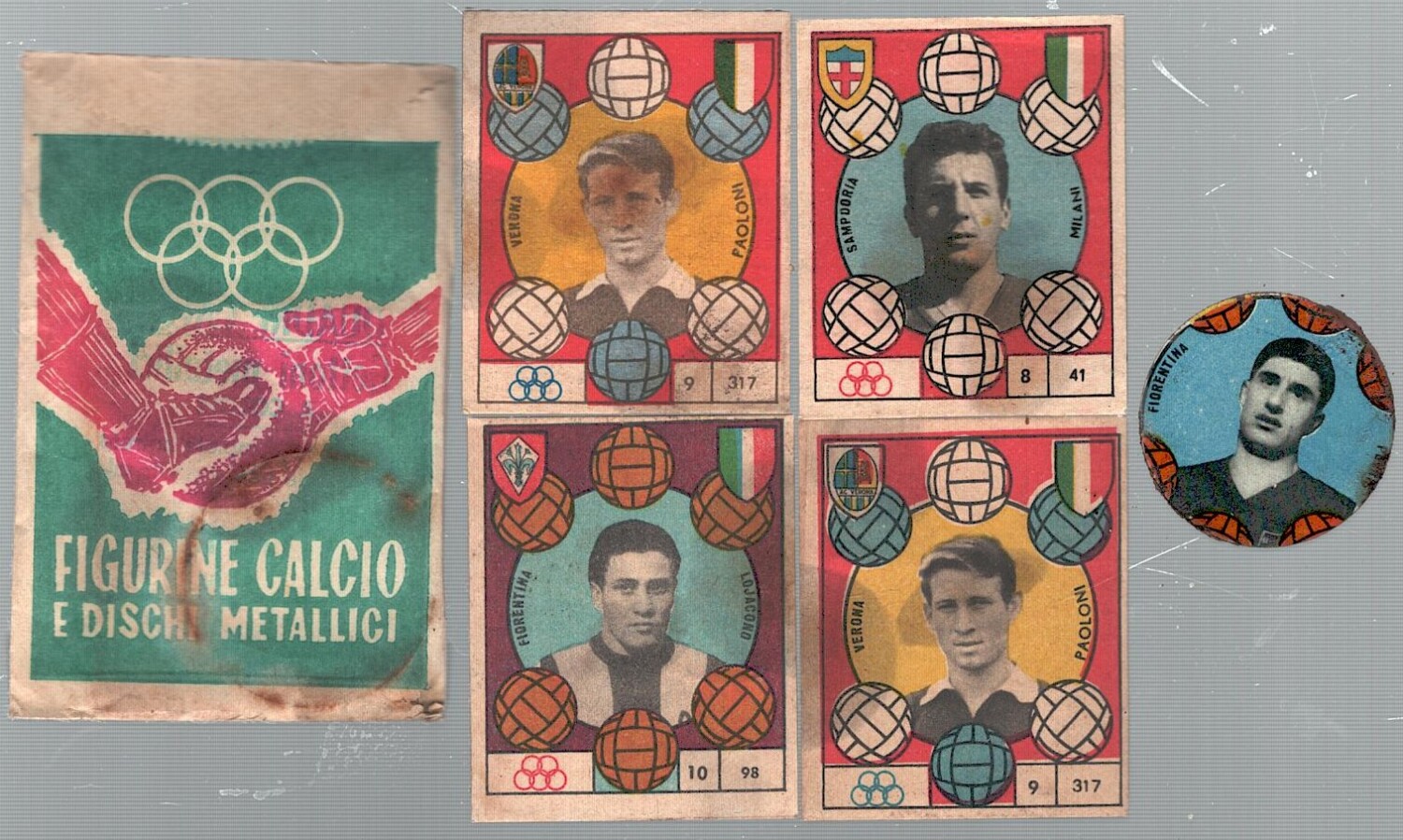| Titolo: | Figurine Calcio e dischi metallici – Bustina di figurine ed. V.A.V. Campionato 1959/60 (Paoloni Milani Loiacono Paoloni) |