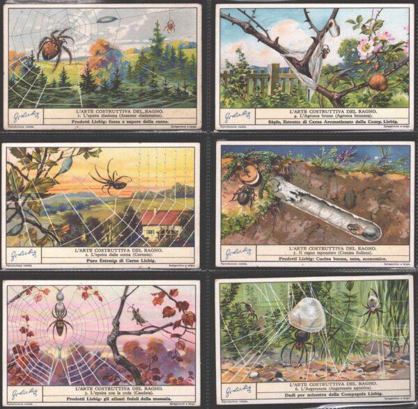 | Titolo: | Figurine Liebig – Serie n. 1308 Completa (6 figurine) – L’arte costruttiva del ragno – Edizione Italiana 1935 |