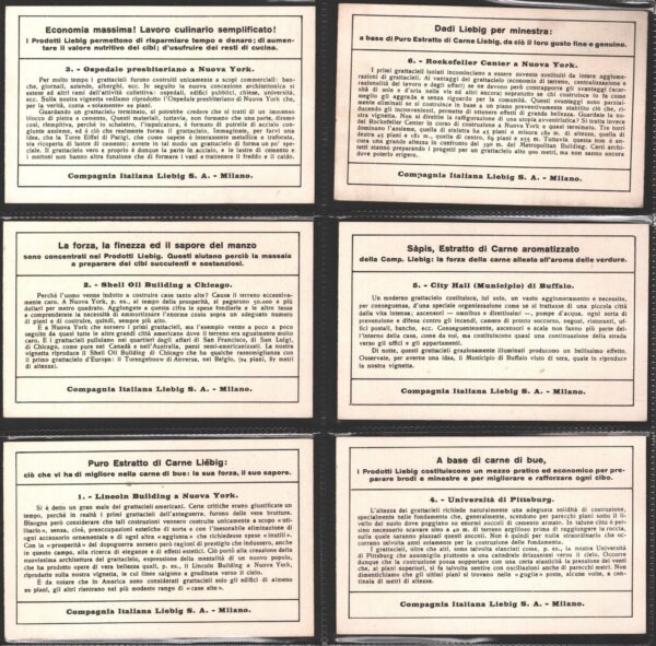 | Titolo: | Figurine Liebig – Serie n. 1317 Completa (6 figurine) – Grattacieli Americani – Edizione Italiana 1936 |