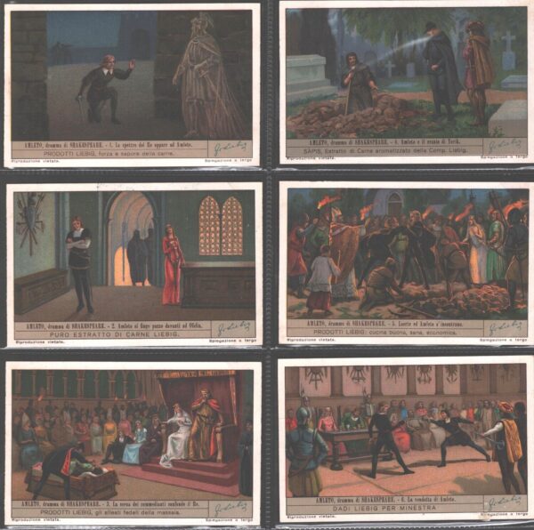 | Titolo: | Figurine Liebig – Serie n. 1327 Completa (6 figurine) – Amleto dramma di Shakespeare – Edizione Italiana 1936 |