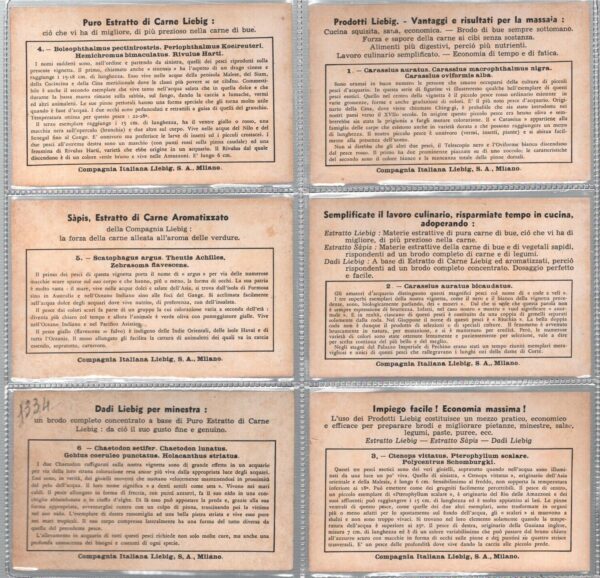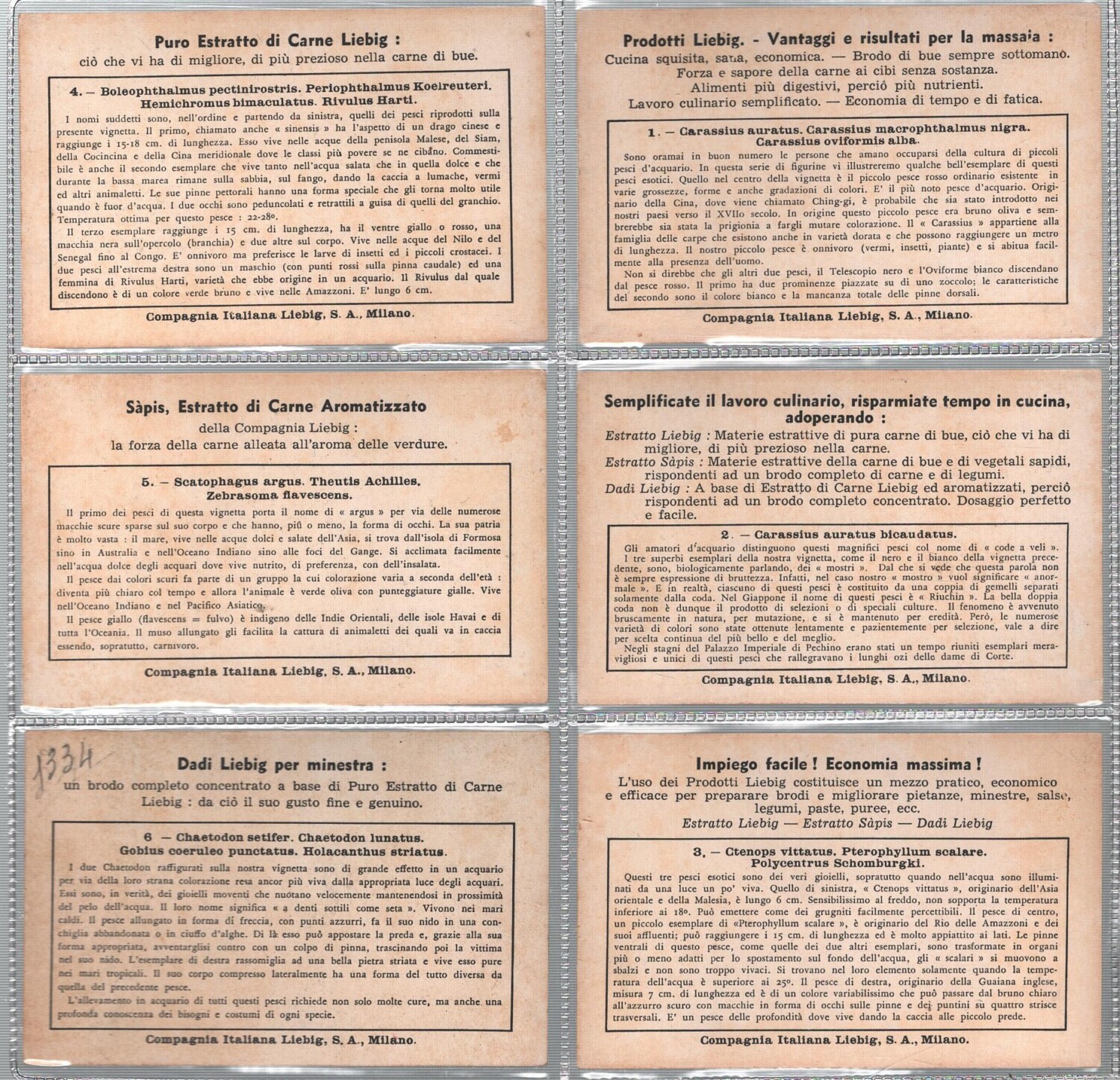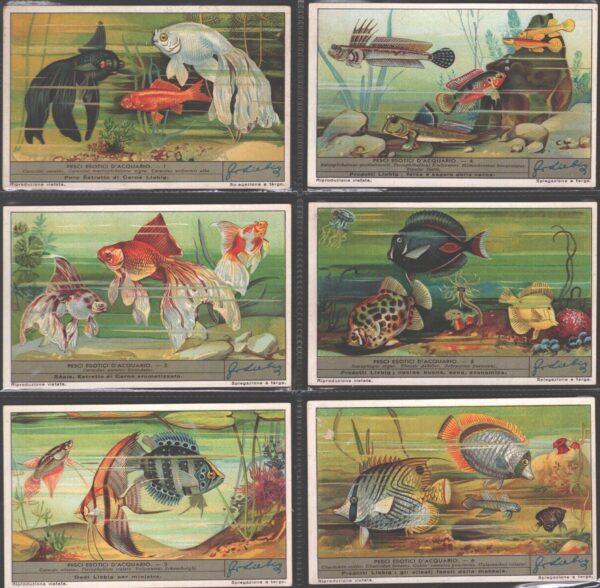 | Titolo: | Figurine Liebig – Serie n. 1339 Completa (6 figurine) – Pesci esotici d’acquario – Edizione Italiana 1936 |