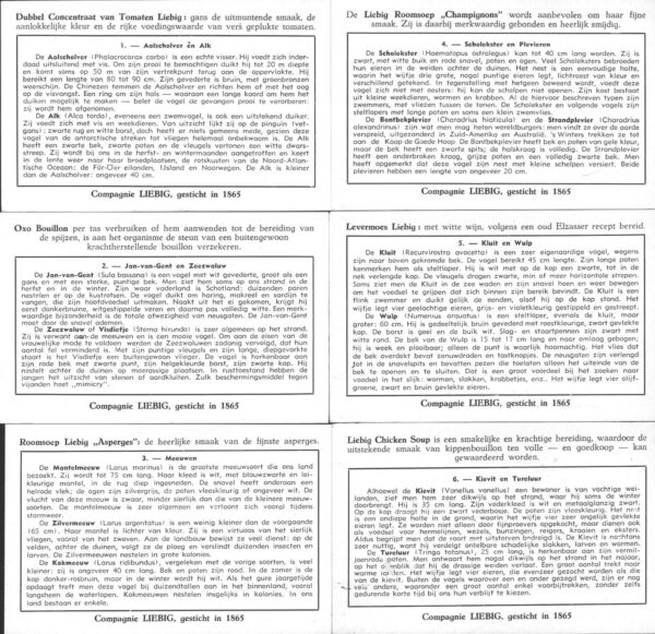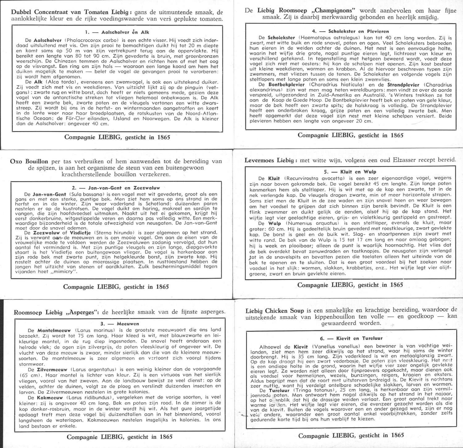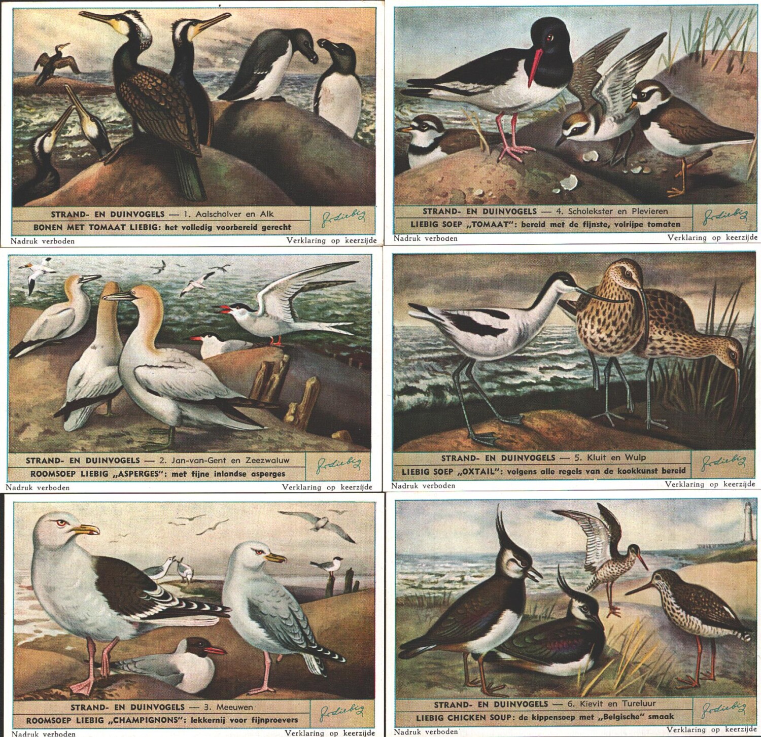 | Titolo: | Figurine Liebig – Serie n. 1610 Completa (6 figurine) – Strand en duinvogels – Edizione Fiamminga 1954 |