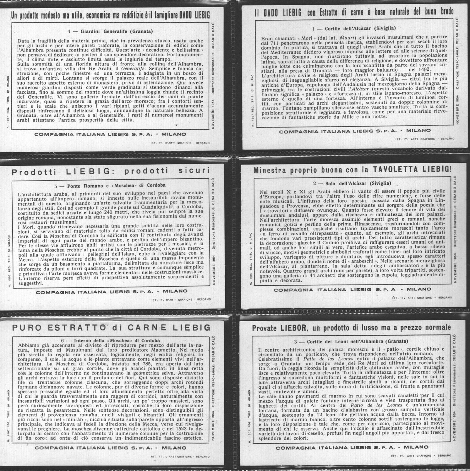 | Titolo: | Figurine Liebig – Serie n. 1613 Completa (6 figurine) – Architettura Moresca in Spagna – Edizione Italiana 1955 |