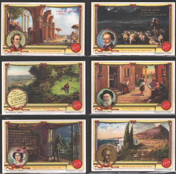 | Titolo: | Figurine Liebig – Serie n. 1614 Completa (6 figurine) – I canti del Leopardi – Edizione Italiana 1955 |