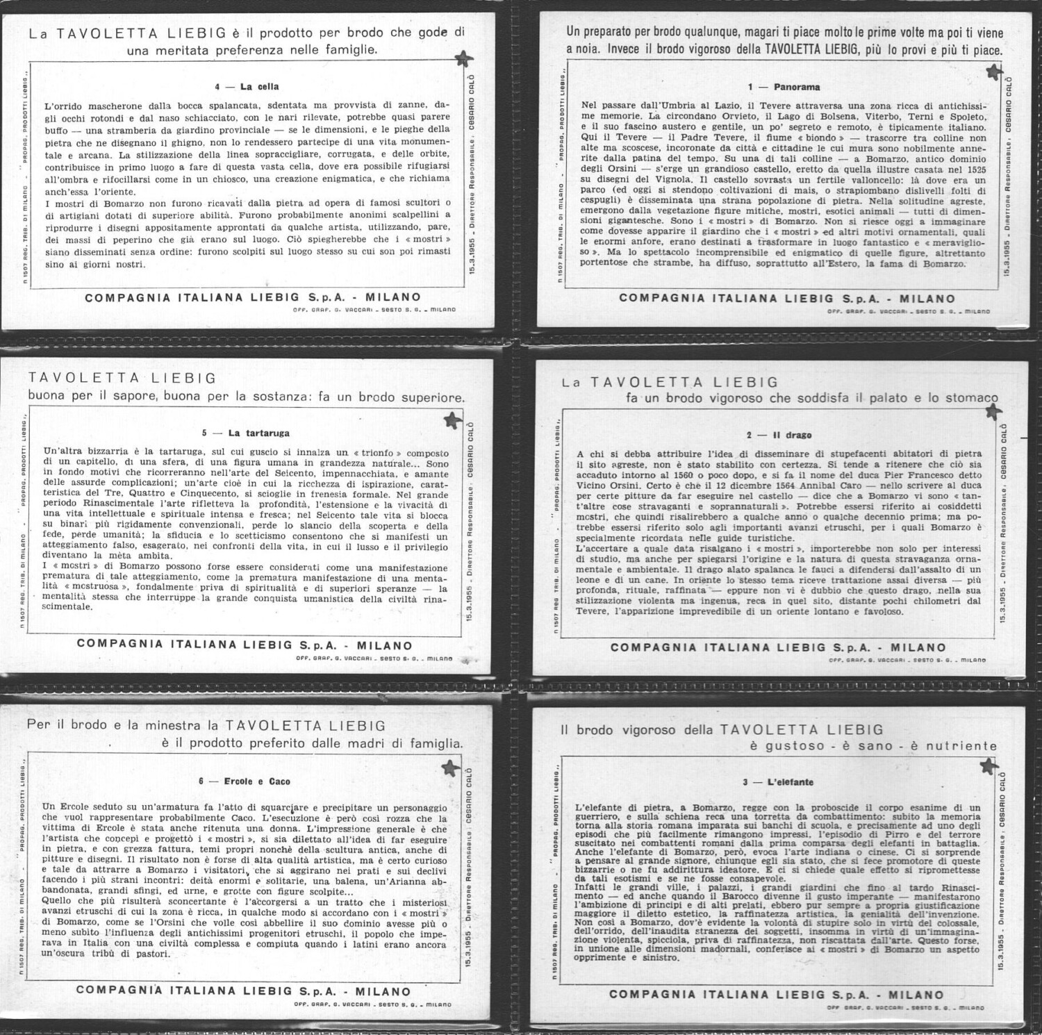 | Titolo: | Figurine Liebig – Serie n. 1619 Completa (6 figurine) – I mostri di Bomarzo – Edizione Italiana 1955 |