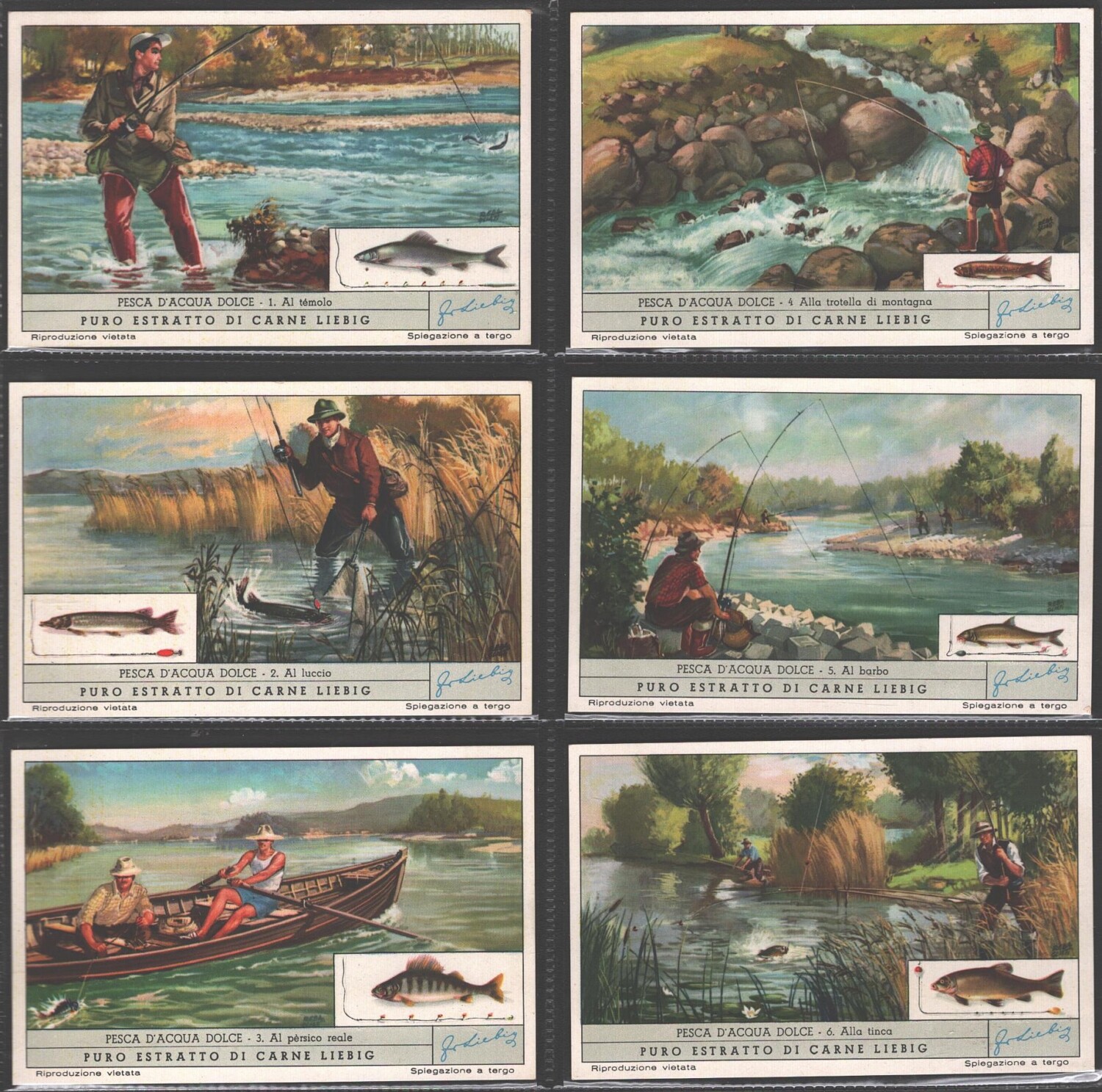 | Titolo: | Figurine Liebig – Serie n. 1623 Completa (6 figurine) – Pesca d’acqua dolce – Edizione Italiana 1955 |